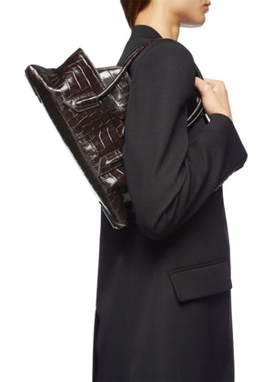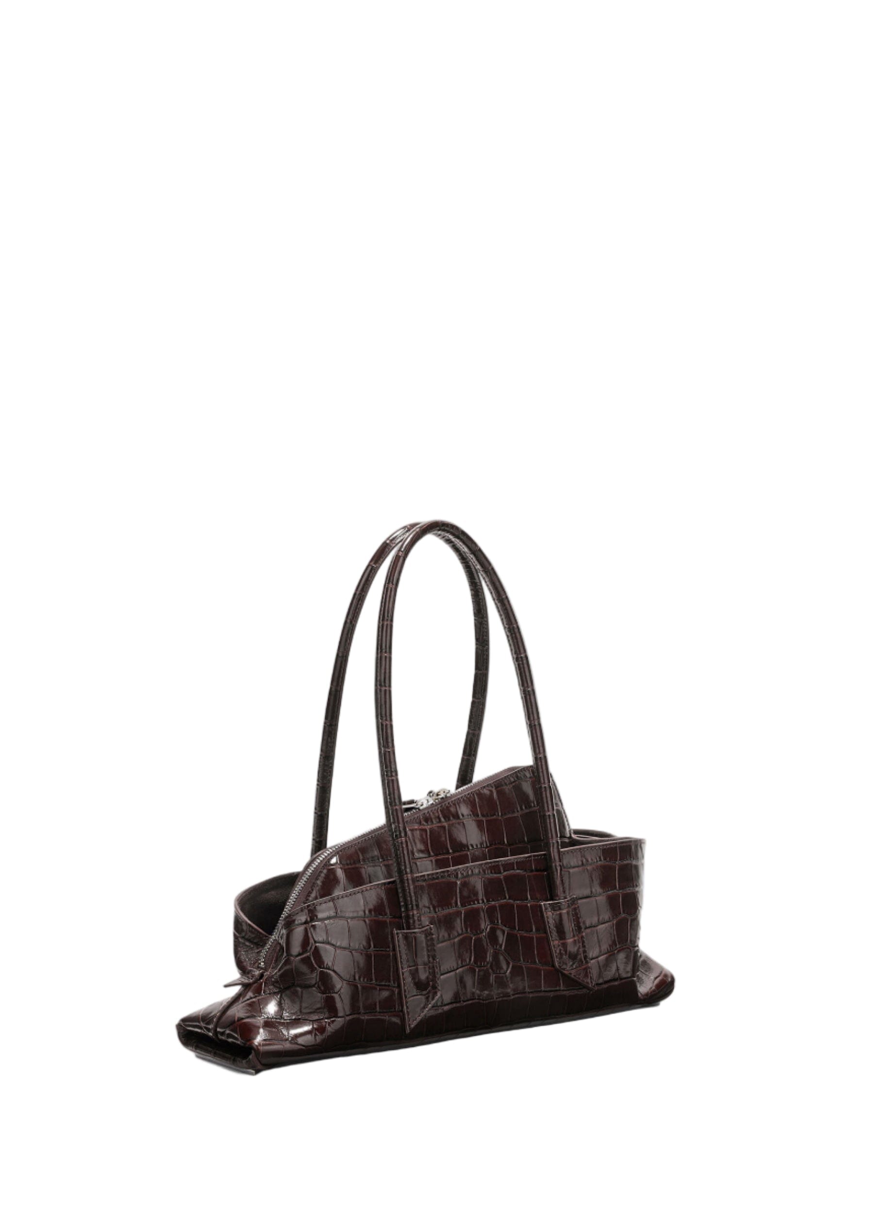 The Attico La Passeggiata Small Top Crocodile Printed Leather In Coffee.