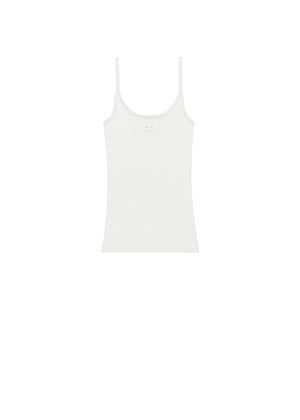 Iconic rib-knit tank top with round neckline and white AC logo on front.