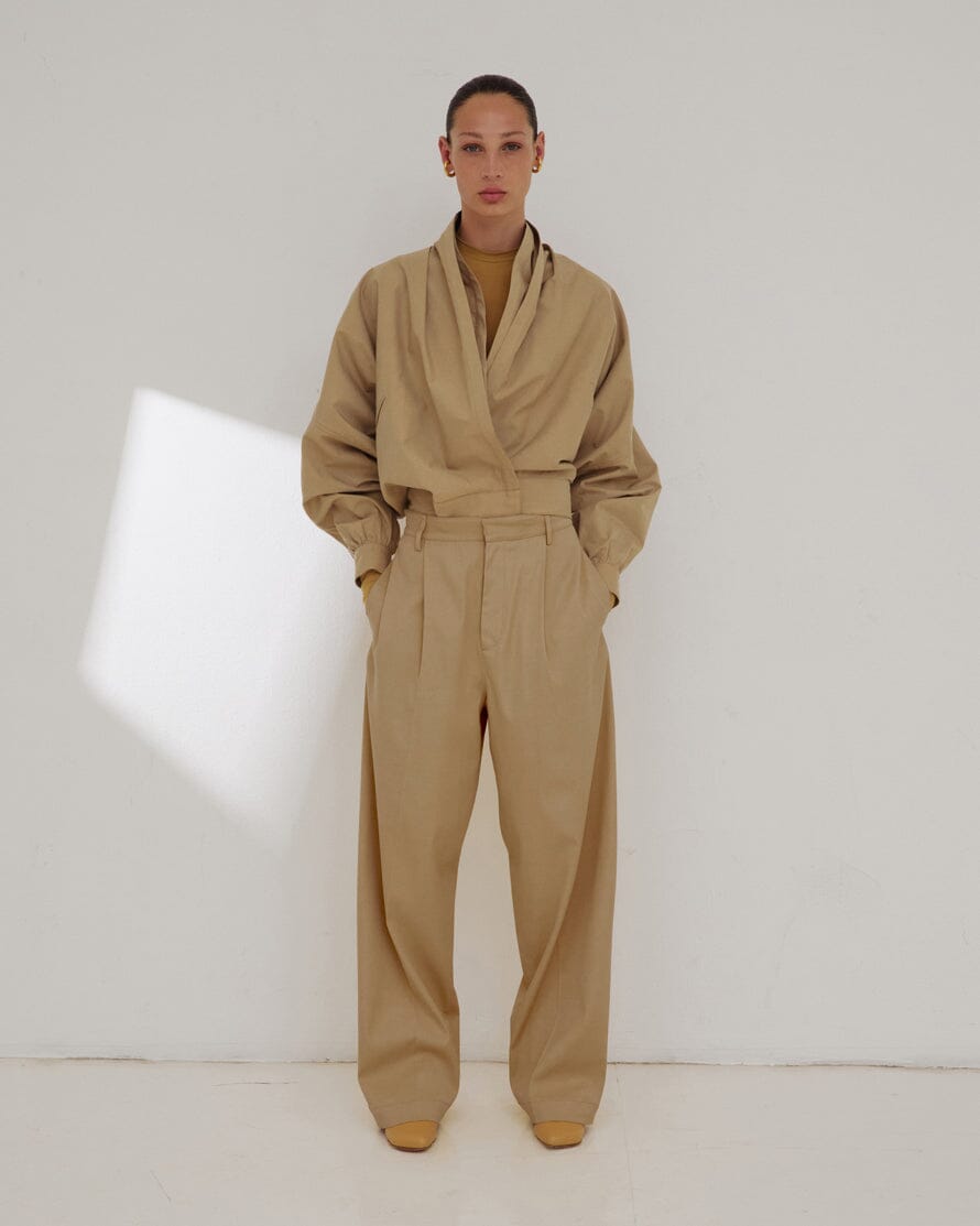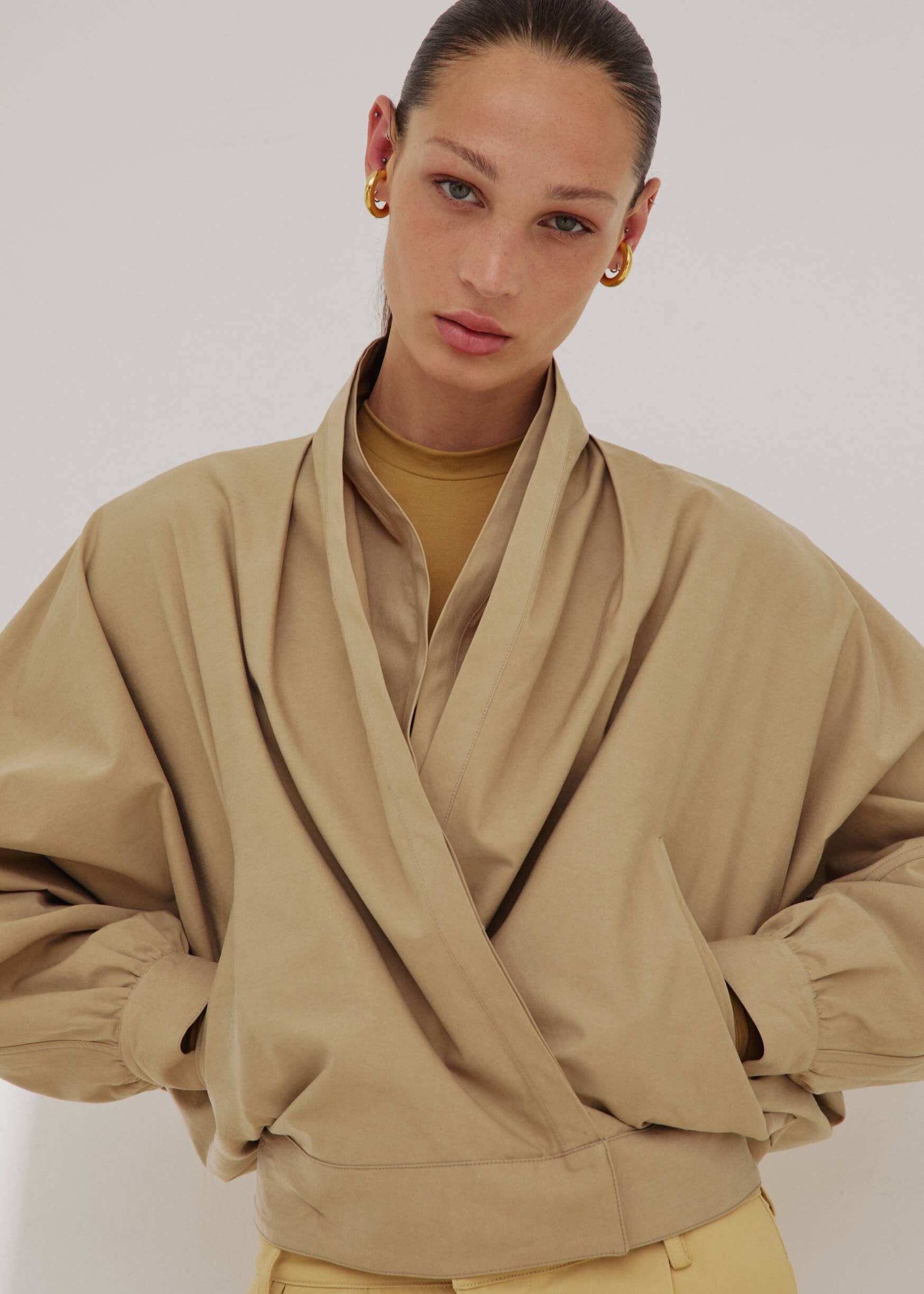 The Darkpark Franca Light Cotton Delave Bomber Jacket In Beige.